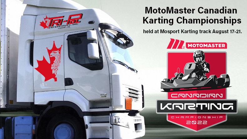 Kris Dabrowski of Tri-Pol Enterprises (trucking company) is offering to take your equipment to and from the 2022 MotoMaster Canadian Karting Championships held at Mosport Karting track August 17-21. The offered shipping cost to each competitor wanting to take a kart and some equipment would be $300 plus motorsportreg.com fees if paid for through MSR. No fees if paid for by etransfer.